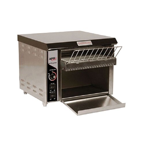 Apw wyott at express radiant conveyor toaster the at express small footprint toaster is standard with front loading, variable speed control, super feeder and 1-1/2" high product opening. it has a 10" conveyor belt and produces over 300 slices per hour. the stainless steel construction protects againAPW Wyott AT Express Radiant Conveyor Toaster Do not Miss!! Apw wyott at express radiant conveyor toaster the at express small footprint toaster is standard with front loading, variable speed control, super feeder and 1-1/2" high product opening. it has a 10" conveyor belt and produces over 300 slices per hour. the stainless steel construction protects again... APW Wyott AT Express Radiant Conveyor Toaster